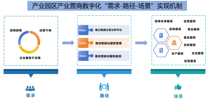 產(chǎn)業(yè)園區(qū)是區(qū)域經(jīng)濟發(fā)展中的關(guān)鍵要素,入園企業(yè)數(shù)量多、人員密集、業(yè)態(tài)廣泛。搭建數(shù)字化產(chǎn)業(yè)營商服務(wù)平臺,可為入園企業(yè)營造更優(yōu)營商環(huán)境,具有社會效益大、受惠范圍廣的特點。本文將以產(chǎn)業(yè)園區(qū)為研究案例,探討以“需求-路徑-場景”機制推動產(chǎn)業(yè)營商數(shù)字化的可行性,并提出園區(qū)產(chǎn)業(yè)營商數(shù)字化的相關(guān)建議。