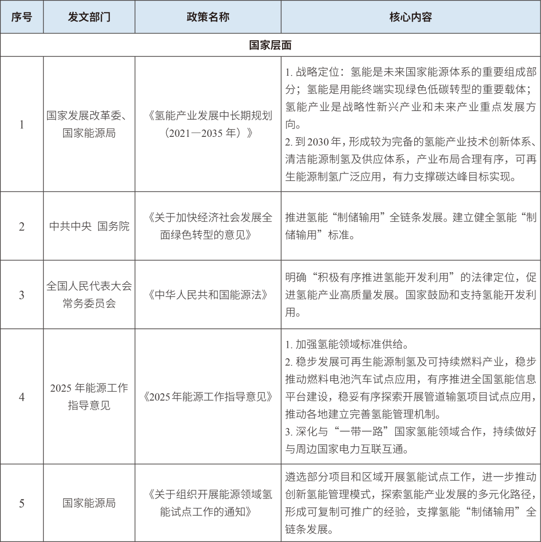 我國(guó)對(duì)氫能產(chǎn)業(yè)發(fā)展的戰(zhàn)略部署和政策支持體系正在持續(xù)完善,已形成多層次、全方位的產(chǎn)業(yè)促進(jìn)機(jī)制。《氫能產(chǎn)業(yè)發(fā)展中長(zhǎng)期規(guī)劃(2021—2035年)》首次從戰(zhàn)略高度明確了氫能的能源屬性和產(chǎn)業(yè)定位。在2024年政府工作報(bào)告中,氫能首次以“前沿新興產(chǎn)業(yè)”的定位被納入。2025年1月1日施行的能源法,正式明確了“積極有序推進(jìn)氫能開(kāi)發(fā)利用”的法律定位;開(kāi)始遴選部分項(xiàng)目和區(qū)域開(kāi)展氫能試點(diǎn)工作,探索氫能產(chǎn)業(yè)發(fā)展的多元化路徑。