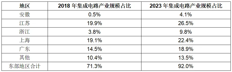 表1 2018-2023年我國東部地區(qū)集成電路產(chǎn)業(yè)規(guī)模占全國比重