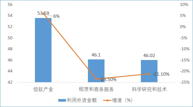 圖4 2023年北京市利用外資排名前三的行業(億美元)