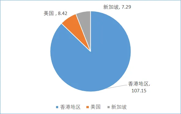 圖7 2023年北京市利用外資來源排名前三的地區和國家(億美元)