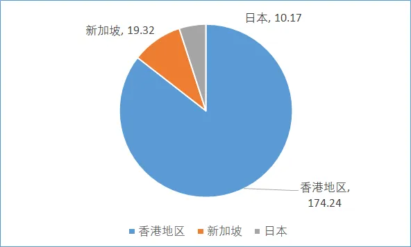 圖8 2023年上海市利用外資來源排名前三的地區和國家(億美元)