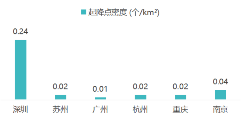 (注:低空經(jīng)濟(jì)起降點(diǎn)密度=起降點(diǎn)數(shù)/城市行政面積)