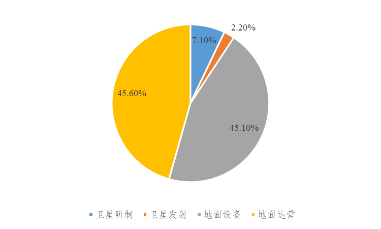 數據顯示,衛星互聯網產業鏈中衛星研制、火箭發射、地面設備和運營服務占總市場規模的比例分別為7.10%、2.20%、45.10%和45.60%,衛星研制和發射是產業鏈中的關鍵環節,但僅占據相對較小的市場份額,而地面設備和地面運營則占據相對較大的市場份額,起著關鍵支撐和運營角色。當前整個產業處于組網階段,因此衛星研制和發射占據主導,隨著組網完成,運營及下游應用將占據主導。