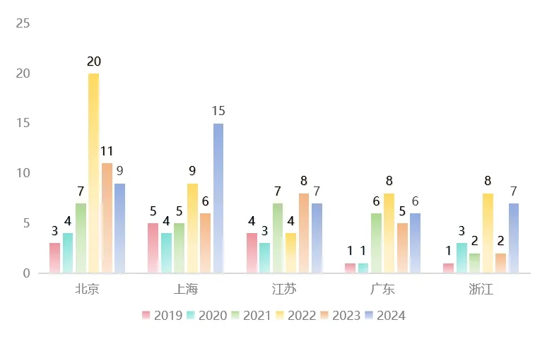 圖4 2019-2024年京滬蘇廣浙創新醫療器械上市情況