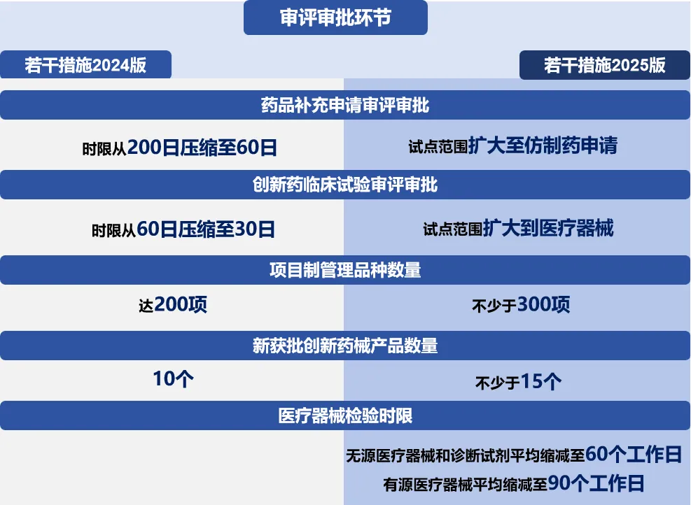 臨床試驗(yàn)審評(píng)審批方面,持續(xù)深化國(guó)家藥監(jiān)局相關(guān)試點(diǎn)工作,將優(yōu)化創(chuàng)新藥臨床試驗(yàn)審評(píng)審批試點(diǎn)擴(kuò)大到醫(yī)療器械,將藥品補(bǔ)充申請(qǐng)審評(píng)審批試點(diǎn)爭(zhēng)取擴(kuò)大至仿制藥申請(qǐng)。藥械檢驗(yàn)檢測(cè)能力方面,首次明確提出提效量化目標(biāo),推動(dòng)實(shí)現(xiàn)無(wú)源醫(yī)療器械和診斷試劑平均縮減至60個(gè)工作日、有源醫(yī)療器械平均縮減至90個(gè)工作日,持續(xù)保持醫(yī)療器械檢驗(yàn)?zāi)芰θ珖?guó)領(lǐng)先地位。針對(duì)臨床急需藥械產(chǎn)品,在全國(guó)率先實(shí)現(xiàn)即收即檢。項(xiàng)目制管理方面,持續(xù)擴(kuò)大服務(wù)范圍和對(duì)象,較2024年新增納入項(xiàng)目制服務(wù)藥械品種數(shù)量100項(xiàng),累計(jì)達(dá)300項(xiàng)。多項(xiàng)舉措助力藥械產(chǎn)品上市“加速度”,實(shí)現(xiàn)2025年新獲批創(chuàng)新藥械產(chǎn)品數(shù)量不少于15個(gè)。