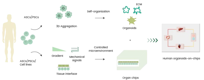 類器官具有人源性與近生理性兩大顯著優勢,通過人源干細胞誘導分化形成,既保留了器官的細胞多樣性與組織結構,更重現了部分關鍵生理功能(如肺的呼吸功能、腸道的營養吸收、腎臟的濾過功能等)。器官芯片則精準復刻細胞的微環境,高度模擬人體生理環境,通過操控細胞和組織結構模擬出人體內的化學物質濃度變化和生物力學作用,構建出一個能夠精準調控細胞生存環境的“智能實驗室”。二者成功打破了傳統二維模型的局限性,實現人體生理環境的高仿生度,不僅可以有效降低物種差異的數據偏差,還可以避免動物實驗的倫理困境。